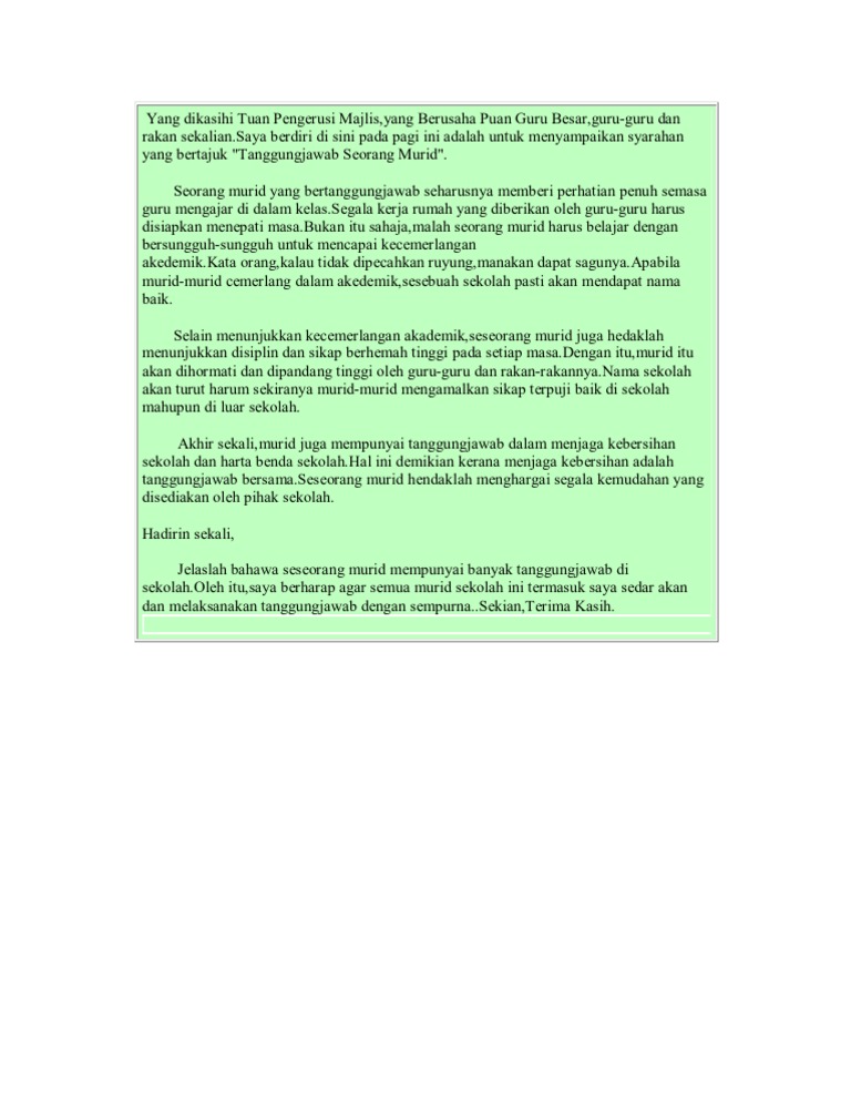 Contoh Karangan Peranan Murid